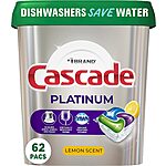 Cascade Platinum Dishwasher Pods Lemon, 62 Count. 2 for $22.92