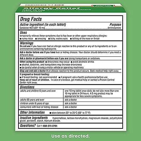Comparable to the national brand: Contains the same active ingredient as Zyrtec Tablets