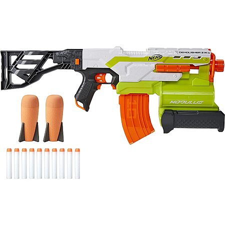 Amazon[amazon.com] has NERF Modulus Demolisher 2-in-1 Motorized Blaster w/ 10 Elite Darts, 2 Rockets, Removable Stock, & Banana Clip for $28.99. Shipping is Free