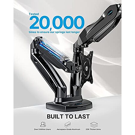 Was coming here to say something similar. Caught this the last time it was cheap somewhere (Newegg maybe?) and is has held 2x 27in 1440 dell monitors (one gsync one ips), Articulation points are... a little finnicky sometimes, though I think that's more the nature of having 2x 27 on them (both in landscape).