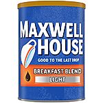 11-Oz Maxwell House Breakfast Blend Ground Coffee (Light Roast) $2.60 w/ S&S + Free Shipping w/ Prime or $25+