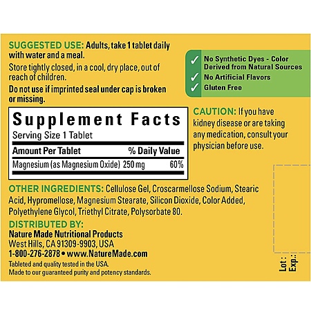 100-Count Nature Made 250mg Magnesium Oxide Tablets 2 for $3.02 ($1.51 each) w/ S&S + Free Shipping w/ Prime or Orders $25+