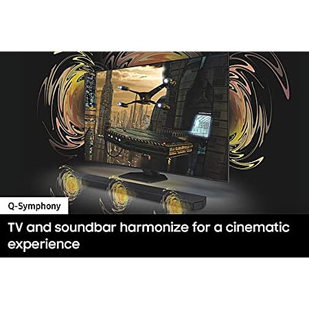 Q-SYMPHONY: Perfectly synchronized, fully immersive audio floods your room all at once, using every speaker in compatible Samsung TV and soundbars**