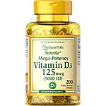 200-Count Puritan's Pride Vitamin D3 5000 IU Softgels on sale for $5.38 - 35% off when you 'clip' product page coupon - 5% off when you check out via Subscribe & Save =
