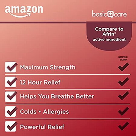 Amazon.com[amazon.com] has 1-Fl Oz Amazon Basic Care Maximum Strength 12 Hour Nasal Spray on sale for $4.55 - 5% off when you check out via Subscribe & Save = $4.32. Shipping is free w/ Prime or on orders $25+.