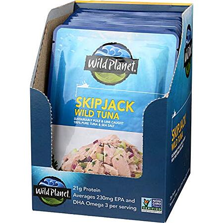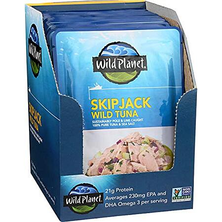 Wild Planet Skipjack Wild Tuna, Sea Salt, Pouch, Keto and Paleo, 3rd Party Mercury Tested, 3 Ounce (Pack of 12) for