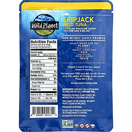 Product Description from Store- SUSTAINABLE WILD TUNA – Wild Planet's tuna is pole and line caught in the northern part of the Pacific Ocean or off coastal New Zealand, maintaining natural populations and preserving the ecosystem.