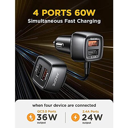 4-Port AINOPE 60W QC 3.0 Car Charger Adapter $9.95 + Free Shipping w/ Prime or orders $25+