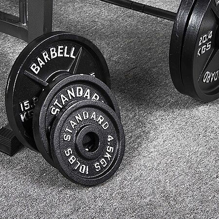 BalanceFrom Classic Cast Iron Weight Plates for Strength Training 1-Inch or 2-Inch Standard or Olympic Made of solid cast iron with a 2-inch center hole fits any Olympic bar with diameter 2” or less; Can be used with 2” dumbbell bars too All plates features a durable black baked enamel finish to prevent the plates from rust and corrosion without any unpleasant odor Labeled in both LB and KG for easy recognition Weight plates can be used to perform muscle strengthening exercises and endurance training or to increase flexibility and balance Many options available