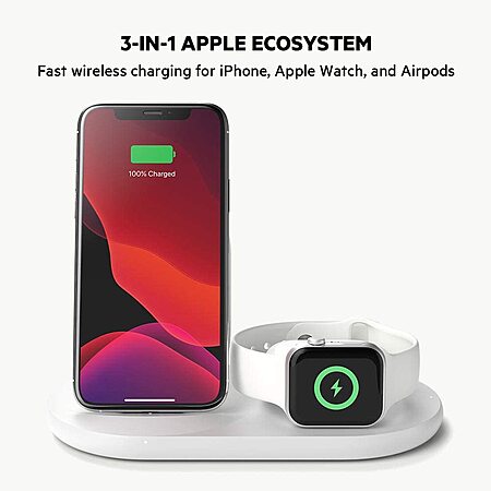 Amazon: Belkin 3-in-1 Wireless Charger, Wireless Charging Stand for iPhone, Apple Watch & AirPods - iPhone Case Compatible Qi Charger $71.24 + Free Shipping