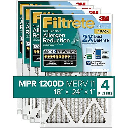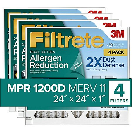 4-Pack 3M Filtrete Dual-Action Micro Allergen Plus MERV 11 Filter (Various Sizes) on sale
