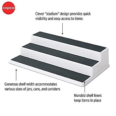 15" Copco Non-Skid 3-Tier Spice Pantry Kitchen Cabinet Organizer (White/Grey)