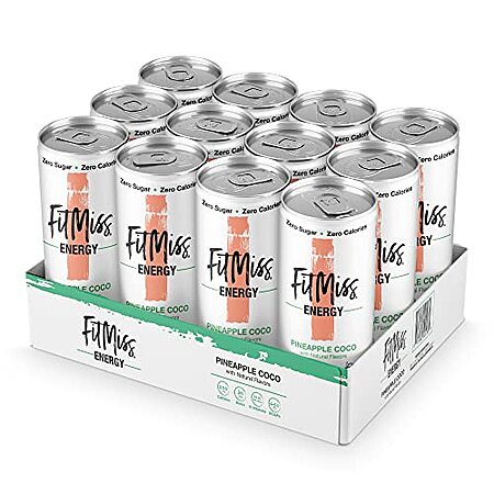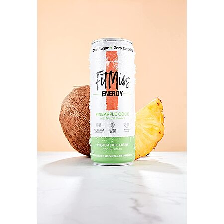 MusclePharm FitMiss Energy Drink 12oz (Pack of 12) - Pineapple Coconut - Sugar Free Calories - Perfectly Carbonated with No Artificial Colors or Dyes for