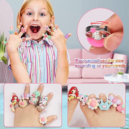 24-Count Nicmore Girls' Adjustable Jewelry Rings (various designs) on sale for