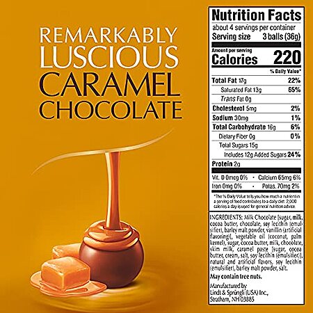 Model: Lindt LINDOR Caramel Milk Chocolate Truffles, Milk Chocolate Candy with Smooth, Melting Truffle Center, Great for gift giving, 25.4 oz., 60 Count