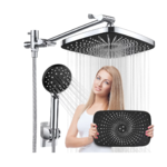 Veken 12 Inch Rain Shower Head with 5 Settings High Pressure Handheld Spray, Rainfall Shower Head with Adjustable Extension Arm, Chrome Dual Shower Head and Handheld Shower Head Combo with 70" Hose. https://www.amazon.com/dp/B09XD3R73G