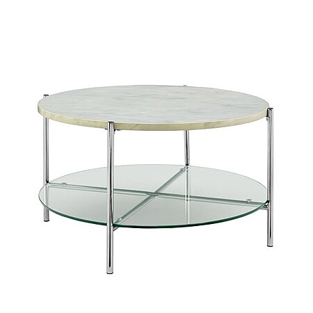 Manor Park Mid-Century Round Coffee Table (Faux White Marble/Chrome) $68 + Free Shipping