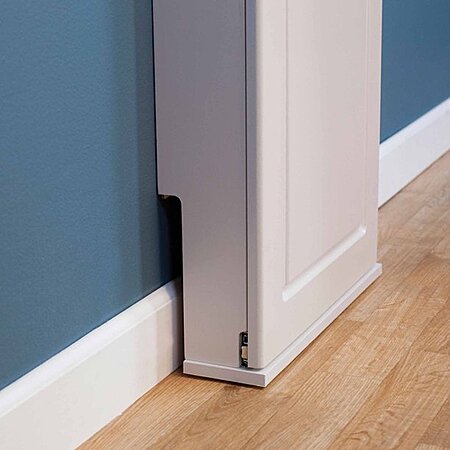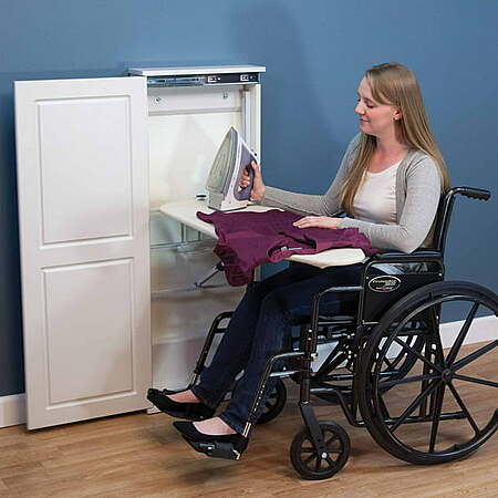 Iron 'n Fold is the easy-to-use, easy-to-install standing ironing board that you put away without hassle or fuss. This discreet, foldaway board looks like a simple, two-panel cabinet. But tucked inside is the delightful foldaway ironing board. Simply slide the cabinet door open and lift the board to the full, upright position. A stability cone slides down to cover the board's support brace for extra stability and security while you iron. When you're finished ironing, simply return the board to the highest position and fold the board down, nose to the floor. Slide the door closed, and your foldaway ironing board is hidden out-of-sight until the next time you need it. Unit can be tailored to your home or office needs, whether it's in your laundry room, closet, kitchen or bath. Customized for you, by you!