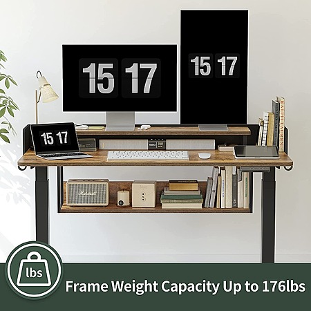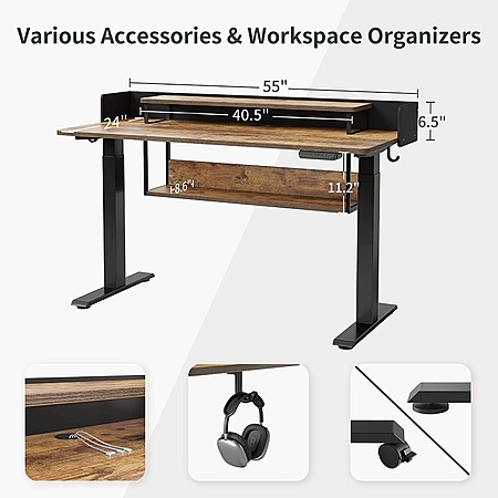 55" x 24" Standing Desk Adjustable Electric Height with Double Shelves, Home Office Workstation Sit Stand up Desk, on sale for $269.99 - $40 w/Clipped Coupon on Item Page =