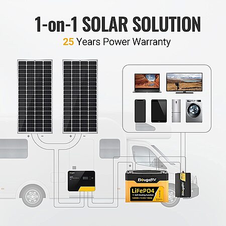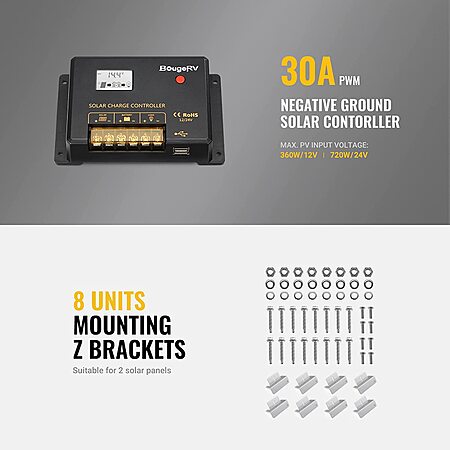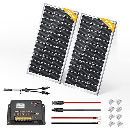 BougeRV 2 x 100W Solar Panel Kit + 30A PWM Controller (2Pcs 100W+30A PWM) on sale for $229.99 - 20% when you apply promo code