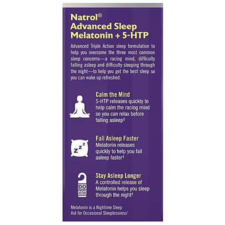-Calm and Relax Your Mind: Natrol Advanced Sleep Melatonin + 5-HTP is scientifically formulated bi-layer tablet designed to reduce common sleep issues including a racing mind, difficulty falling asleep and problems sleeping through the night
