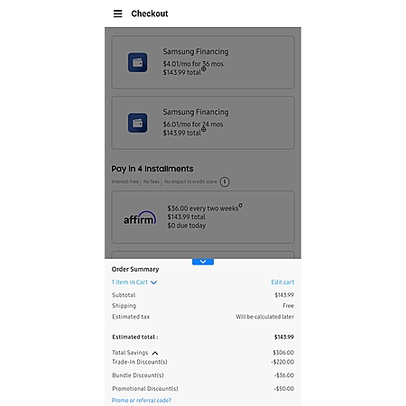 Note: The amount of discount will vary by account as some of the discounts appear to be targeted promotions. The amount of the discount will also vary by the smartwatch trade-in option selected. Some members may receive additional promos ordering via the Samsung Shop Mobile App. See more reports of the discounts members are receiving in the forum thread.