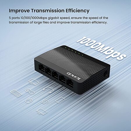 【GIGABIT SPEED】-Provide 5 10/100/1000Mbps adaptive port, all ports wire-speed forwarding, up to 1000 megabits per second