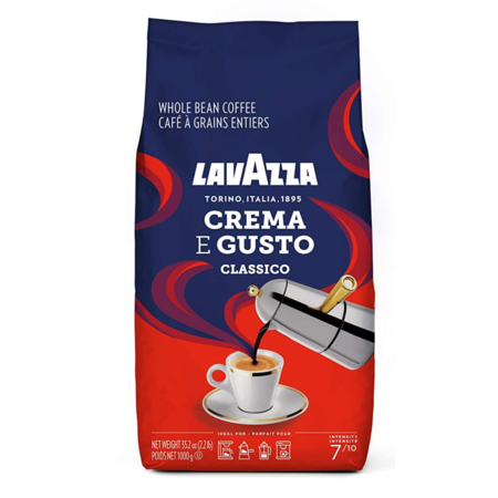 Lavazza Crema E Gusto Whole Bean Coffee 1 kg Bag, Authentic Italian, Blended and roasted in Italy, Full-bodied, creamy dark roast with spices notes~$11.99 @ Amazon~Free Prime Ship!