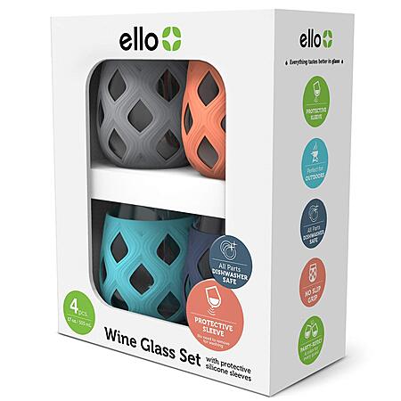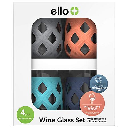 4-Pc Ello Cru Stemless Wine Glass Set w/ Silicone Sleeves (Paloma) $13.85 ($3.45 each) + Free Shipping w/ Prime or on $25+