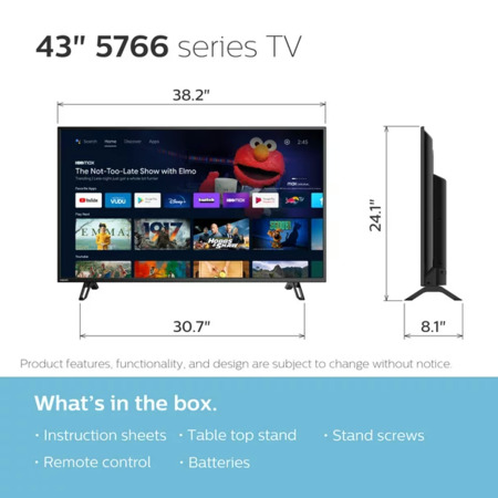 Model: Philips 43" Class 4K Ultra HD (2160p) Android Smart LED TV with Google Assistant (43PFL5766/F7)