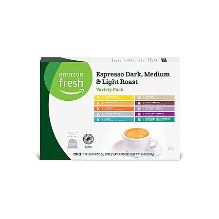 Amazon[amazon.com] also has 100-Count Amazon Fresh Nespresso-Compatible Original Capsules Variety Pack on sale for $29.99 - 5% off when you checkout via Subscribe & Save = $28.49 ($0.28 each). Shipping is free.