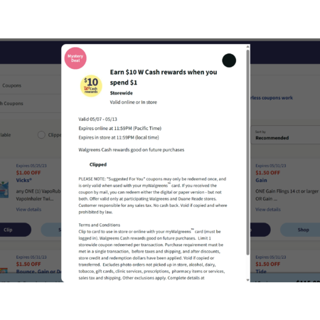 Does this pop up at the beginning of the list or middle to end? I've got 400+ coupons but the first one says I get $10 in WG Cash if I spend $30 on allergy meds..