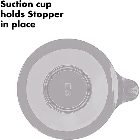 • Suction cup hangs Stopper from the wall when not in use