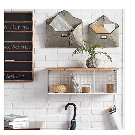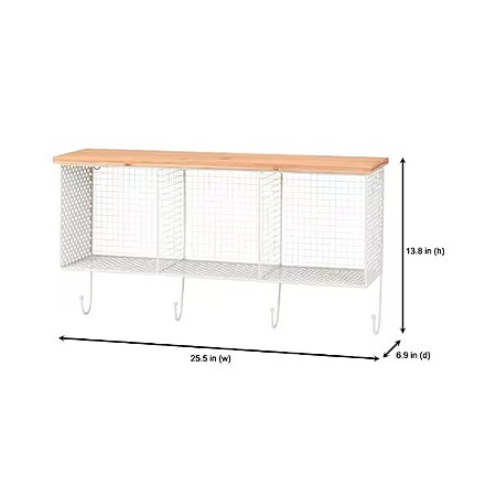 StyleWell Wood & Metal Wall Shelf w/ Hooks (23x19x6")