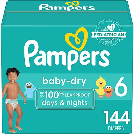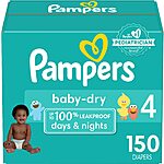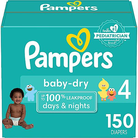Pampers Baby Dry Diapers: 150-Count (size 4) $33.90, 132-Count (size 5) $33.95 & More w/ S&S + Free Shipping