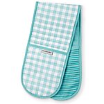 Model: KitchenAid Gingham Casserole Mitt Single Pack, Aqua Sky Blue, 35"x7.5"