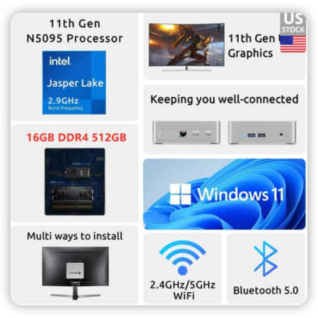 BMAX B3 Mini PC: Intel 11th Gen N5095 (Up to 2.9GHz), 16GB DDR4, 512GB SSD