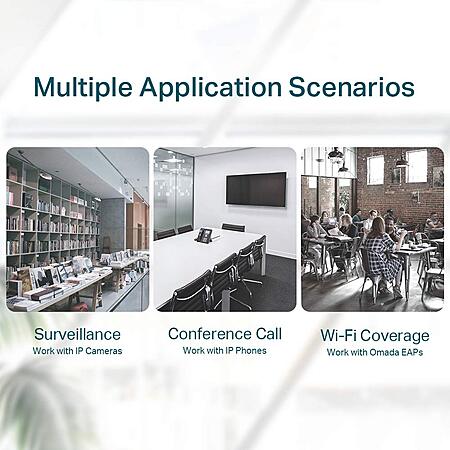 I use several of these with ip cams. they can provide up to 30 watts per port from a shared 65 watts total. even have one ip cam on a coupled 150' Ethernet run to the far part of the backyard and the ip cam is working as expected.