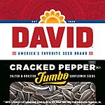 DAVID Roasted/Salted Cracked Pepper Jumbo Sunflower 5.25 OZ Snacks for $1.99 (Free ship with order $25bor Prim)