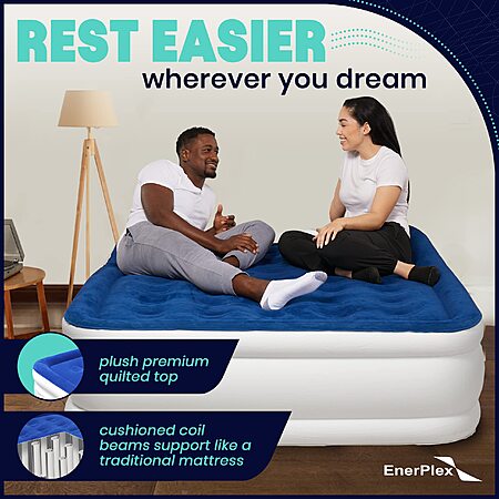 13" EnerPlex Queen Size Double Height Air Mattress w/ Built-In Pump