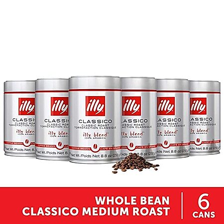 6-Pack 8.8-Oz. illy Classico Whole Bean Coffee (Medium Roast) for