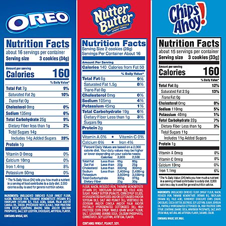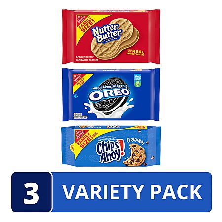 3-Count OREO, CHIPS AHOY! & Nutter Butter Cookies Family Size Variety Pack