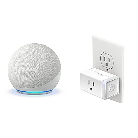 Echo Dot (5th Gen) | Glacier White with Kasa Smart Plug Mini
