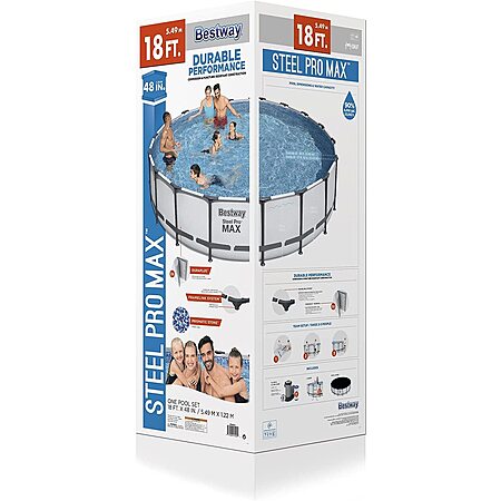 Model: Bestway Steel Pro MAX 18 Foot x 48 Inch Round Metal Frame Above Ground Outdoor Swimming Pool Set with 1,000 Filter Pump, Ladder, and Cover