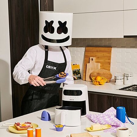 You can air fry that! The CRUX x Marshmello 3-qt. Digital Air Fryer Kit with TurboCrisp technology features patented TurboCrisp technology crisping tray that cooks up to 50% faster than traditional ovens and 4 silicone cupcake molds. CRUX is turning up the beat—and the heat with world renowned Artist & Producer, Marshmello. Cooked, puffed, crispy, gooey perfection is yours every time with this 3-qt. Digital Air Fryer Kit with TurboCrisp from CRUX x Marshmello..."