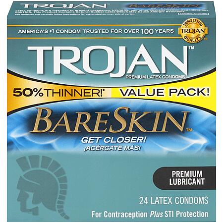 Model: Trojan Bareskin Thin Premium Lubricated Condoms - 24 Count