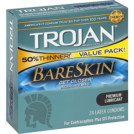 Trojan Bareskin Thin Premium Lubricated Condoms - 24 Count - Save an extra 25% on first Subscribe and Save on Amazon