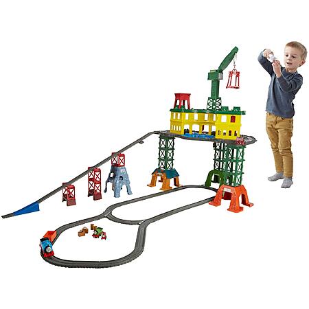 Train set has 3 play levels and includes 35+ feet of customizable track, several iconic locations, a crane, and is compatible with other Thomas & Friends playsets. Storage feature holds 100+ engines (sold separately)