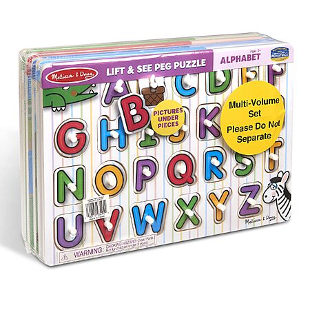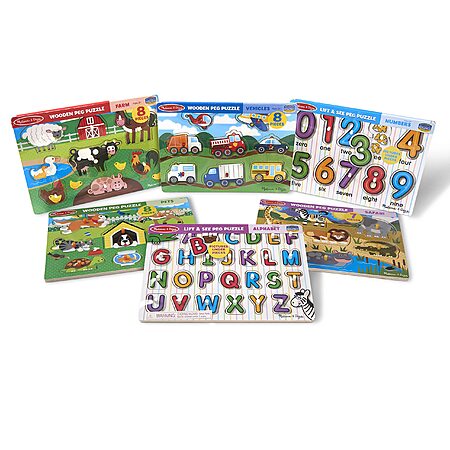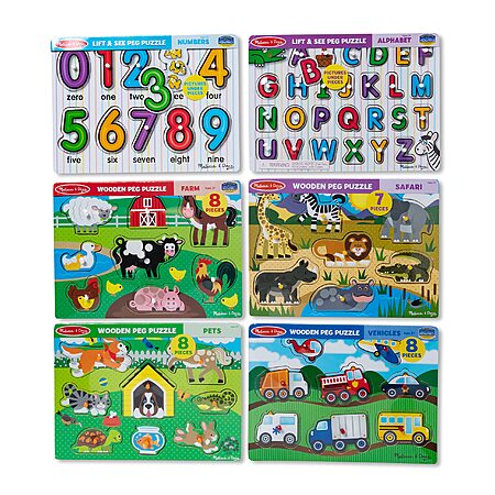 6-Pack Melissa & Doug Kids' Wooden Educational Peg Puzzles of Numbers, Letters, Animals, & Vehicles $30.02 + Free Shipping