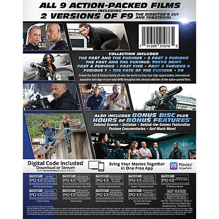 Fast & Furious 9-Movie Collection (Blu-Ray + Digital Code) $29.99 + Free Shipping via Amazon